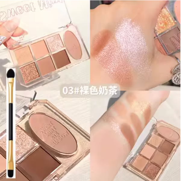 熱推眼影腮紅修容一體盤(03#裸色奶茶+三支眼影刷)
