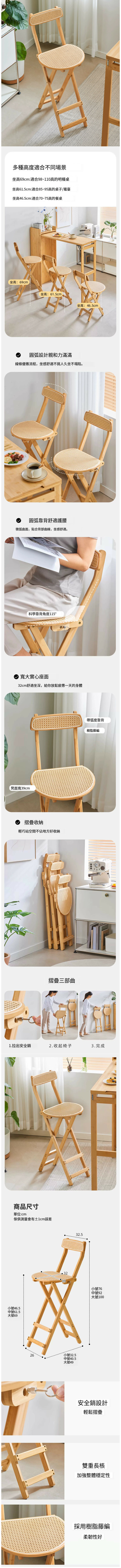 熱推可摺疊吧椅 高腳凳 實木酒吧椅 日式藤編靠背椅子【茶色】92cm