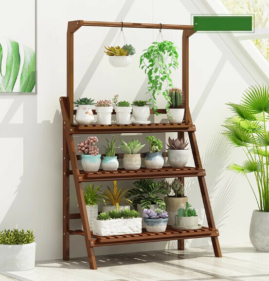 熱推可折疊落地式花架(茶色【吊蘭款】)(三層50款)