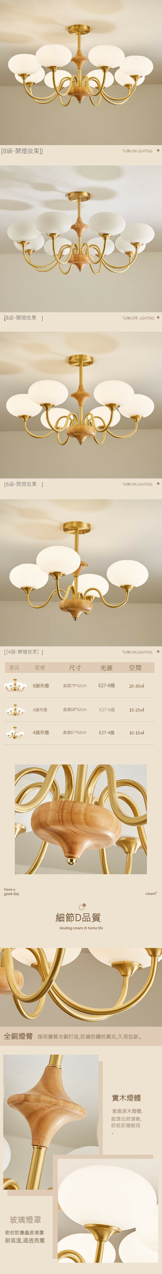 熱推全光譜奶油風吊燈(A款朝上款-4頭)【三色變光】