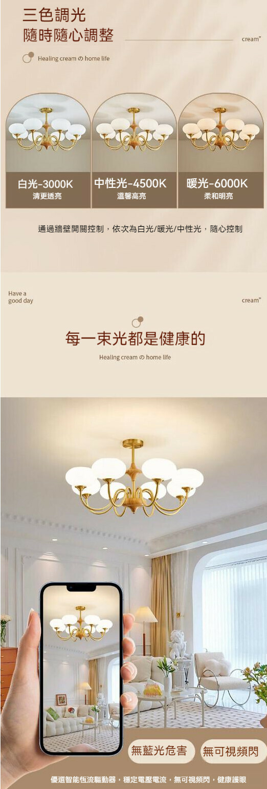 熱推全光譜奶油風吊燈(G款朝上款-8頭)【三色變光】