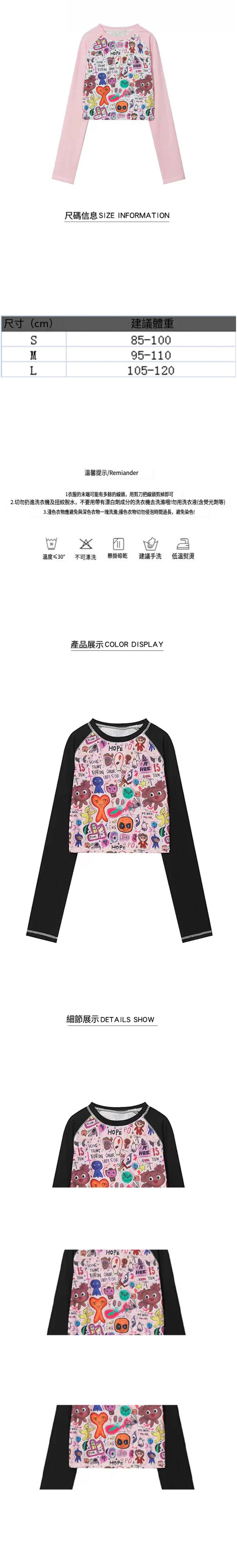 熱推塗鴉印花拼接長袖(粉色)(S/M/L碼,下單後請與客服聯繫發貨尺碼)