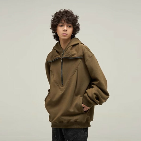 熱推半拉鍊連帽衛衣【軍綠色M-2XL碼,下單後與客服確認發貨尺碼】