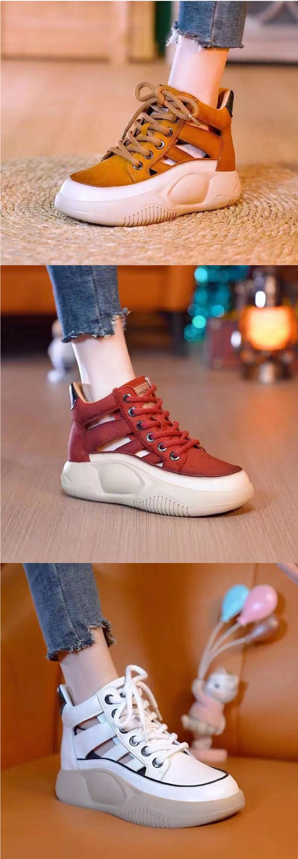 熱推鏤空厚底高幫繫帶休閒女鞋(白色)(尺碼:36-40碼)(下單後請聯絡客服確認發貨尺碼)