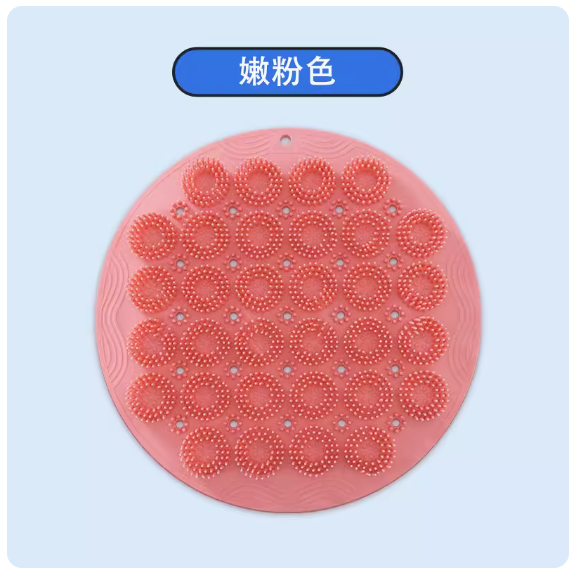 熱推家用後背吸盤按摩搓澡巾(加大圓形矽膠搓背墊-粉嫩色)