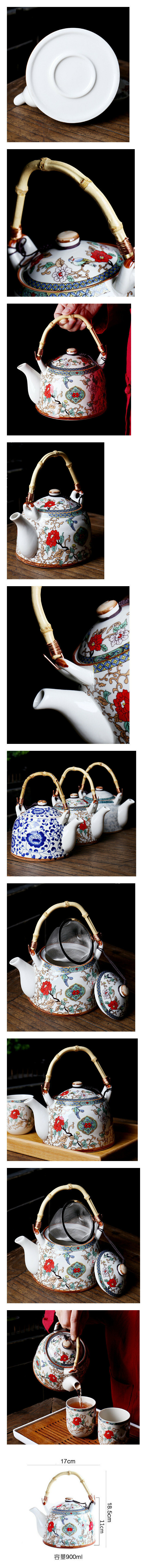 熱推家用中式陶瓷泡茶壺(綠梅900毫升竹藤單壺)