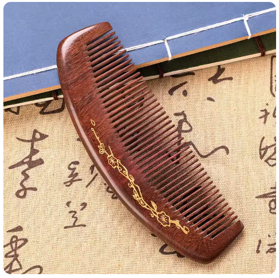 熱推家用天然檀香木梳(【17cm月牙款】燙金檀木梳)