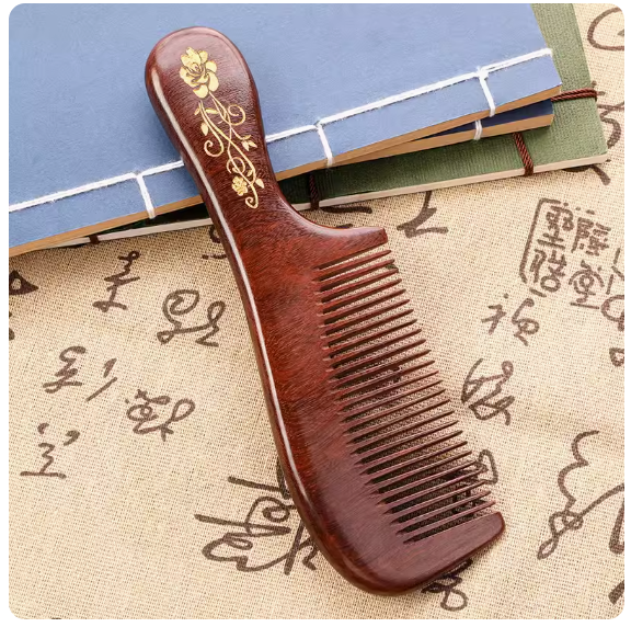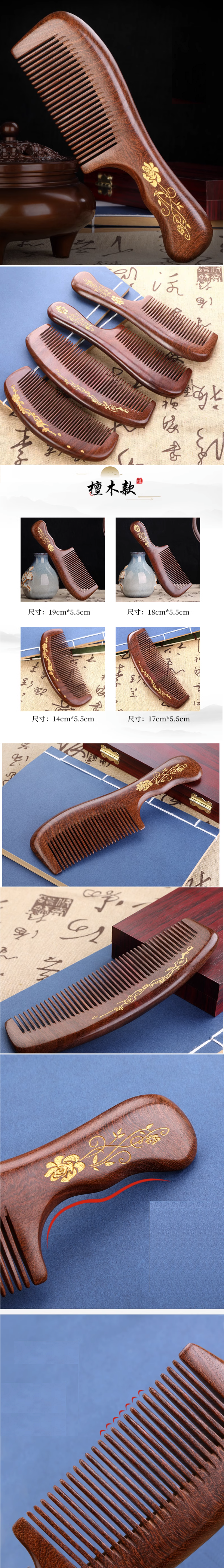 熱推家用天然檀香木梳(【18cm手柄款】燙金檀木梳)