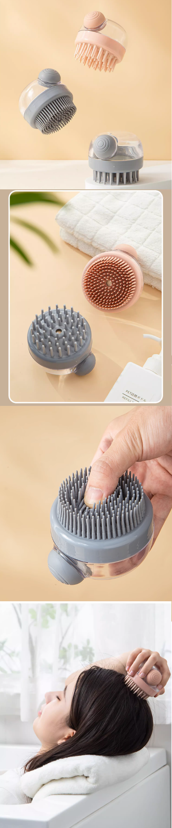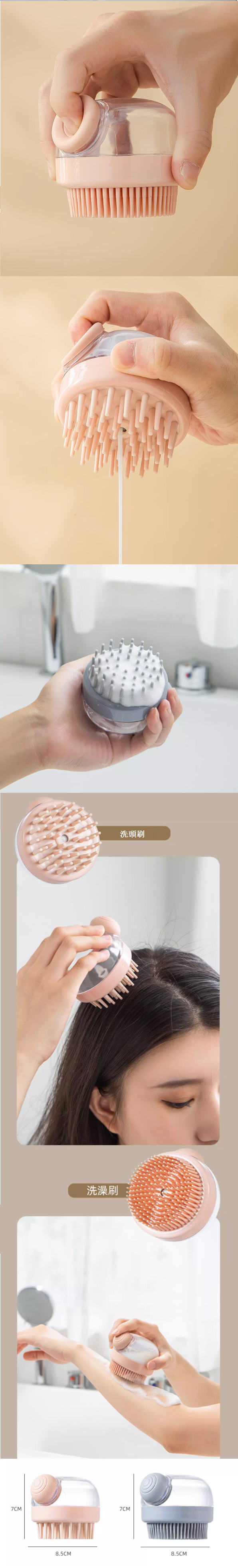 熱推家用矽膠洗頭刷(多功能加液洗澡刷--灰色)