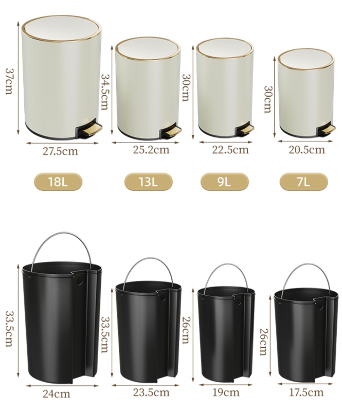 熱推家用不銹鋼腳踩帶蓋垃圾桶(雪幕銀)(尺寸:7L-30*20.5CM)