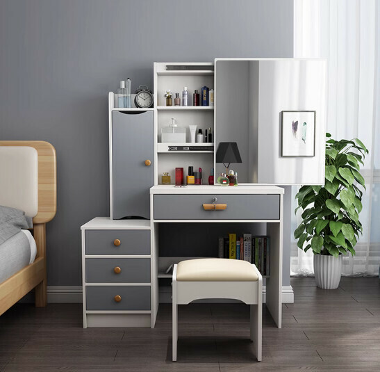 熱推家用收納櫃一體化妝梳妝台(188#暖白色左抽-無燈)