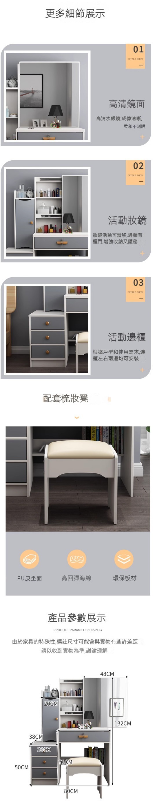 熱推家用收納櫃一體化妝梳妝台(188#暖白色右抽-無燈)