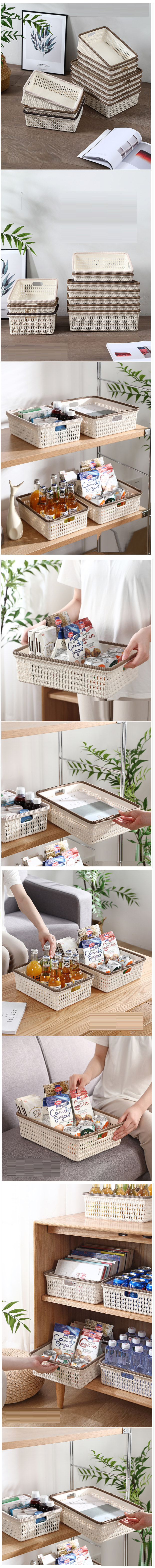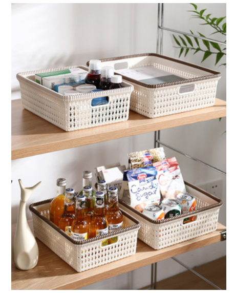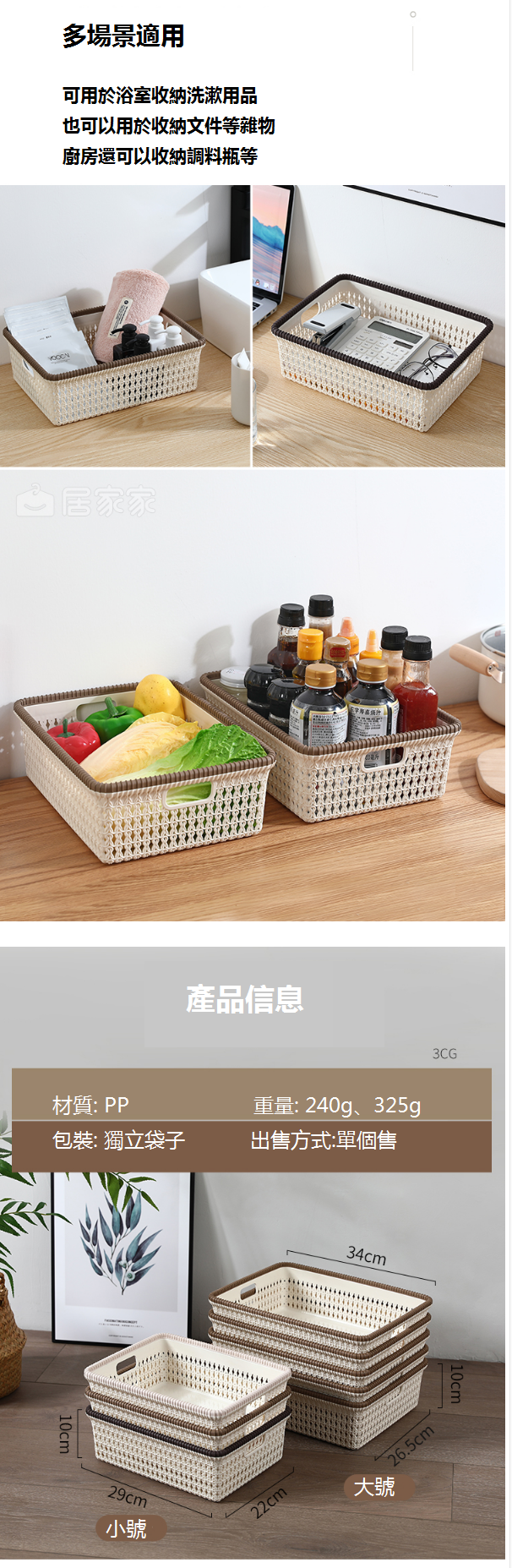 熱推仿藤编桌面收納籃 層架 儲物架(米白色中號【高款】)