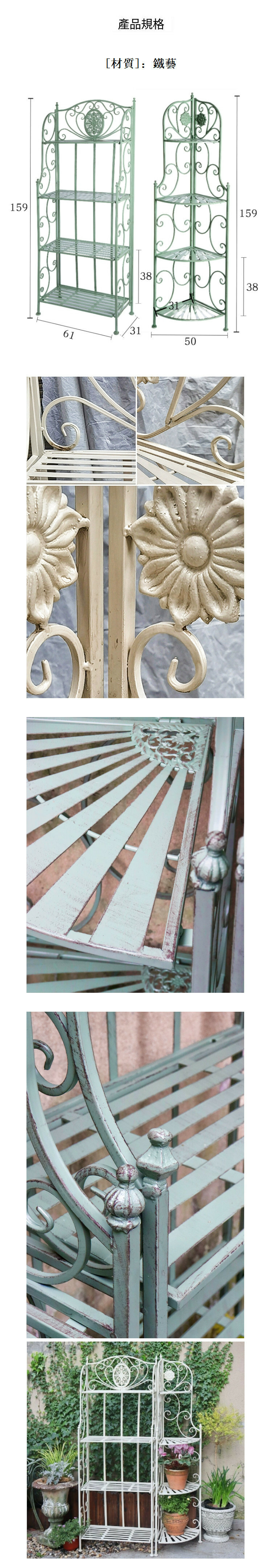 熱推鐵藝空間 戶外花架 盆栽凳 走廊置物架 【4層舊綠色+轉角款】1套2件
