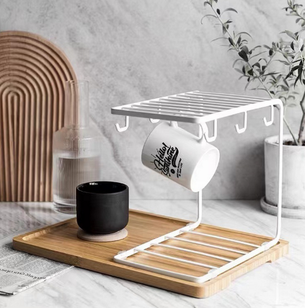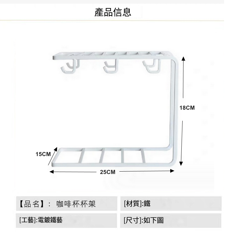 熱推鐵藝咖啡杯架桌面茶杯掛架多功能瀝水收納架(白色)