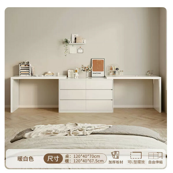 熱推日式組合 梳裝枱 電腦桌 衣櫃 書枱【120cm左桌+120cm右桌+120cm6抽櫃】暖白色