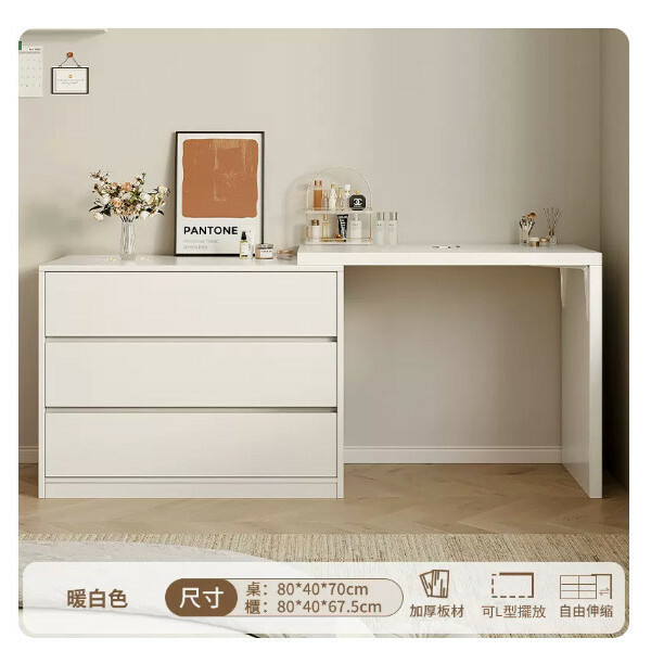 熱推日式組合 梳裝枱 電腦桌 衣櫃 書枱【80cm桌+80cm3抽櫃】暖白色