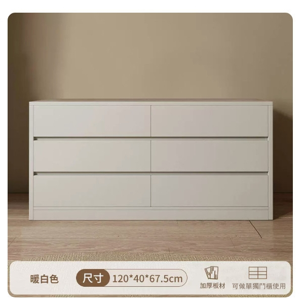 熱推日式組合 梳裝枱 電腦桌 衣櫃 書枱【六抽櫃】120cm暖白色