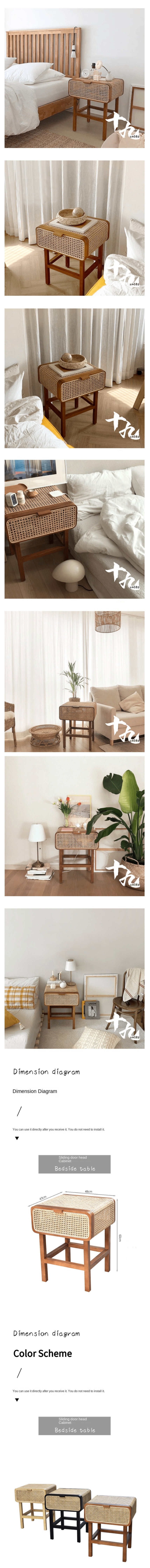 熱推韓國新款編織實木床頭櫃復古白蠟木小櫃(胡桃木色)