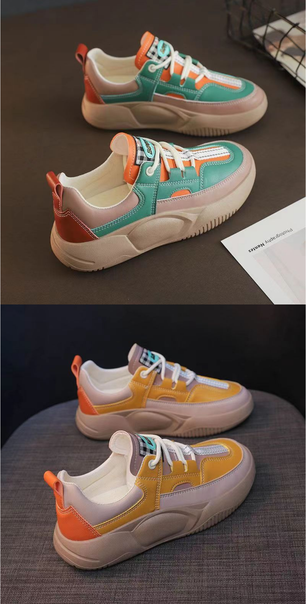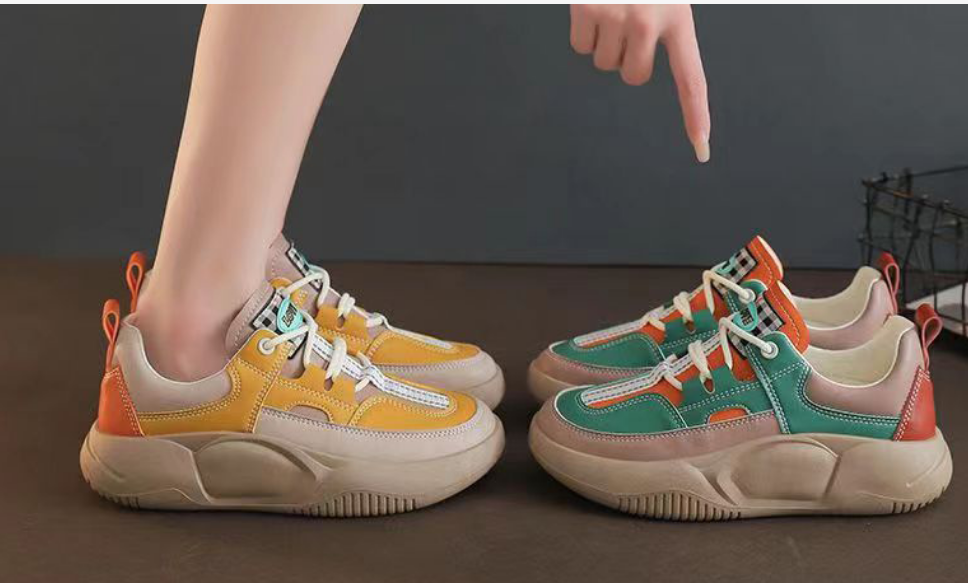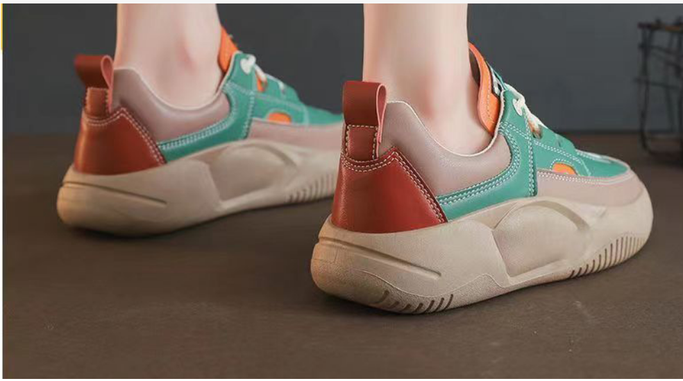 熱推皮面拼接厚底女運動鞋(米綠)(尺碼:36-40碼)(下單後請聯絡客服確認發貨尺碼)