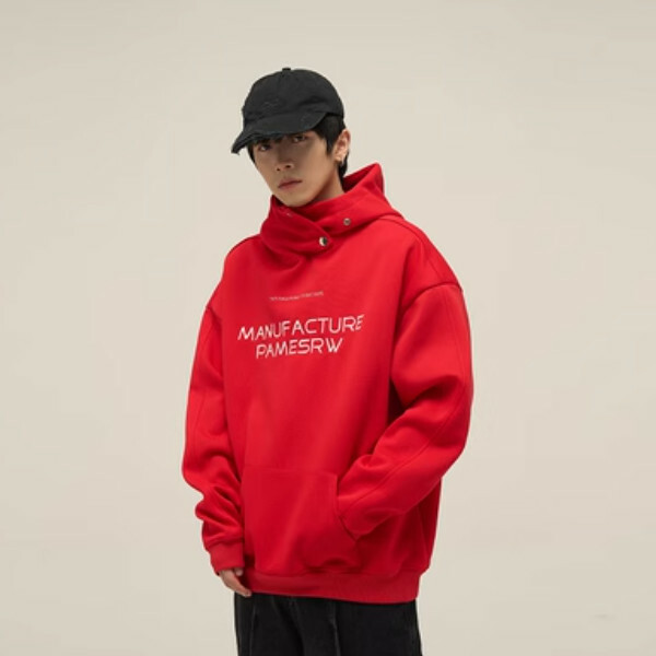 熱推字母刺繡連帽衛衣【紅色加絨加奧粒絨M-XL碼,下單後與客服確認發貨尺碼】