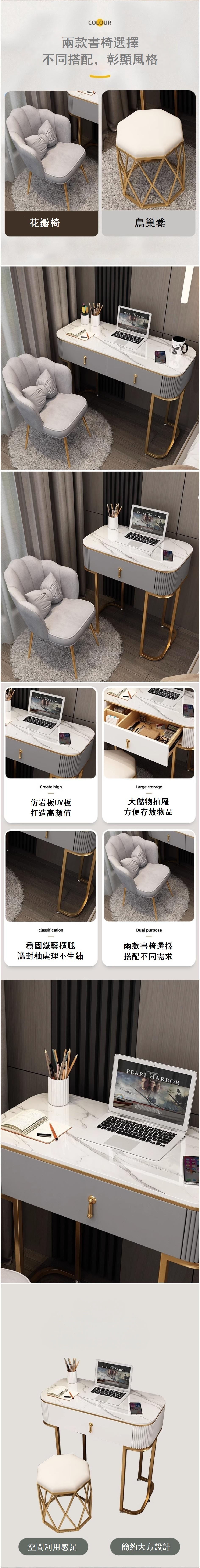 熱推輕奢岩板書桌臥室電腦臺式桌(灰色100書桌+花瓣椅)
