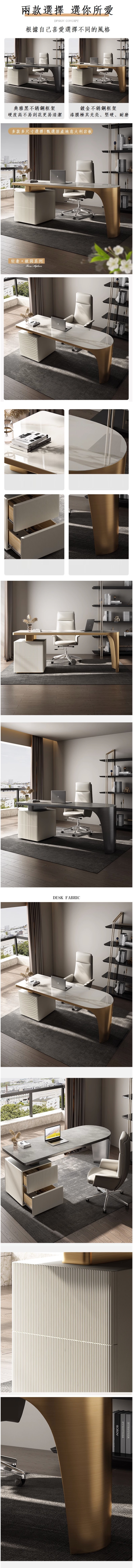 熱推輕奢岩板書桌 電腦桌 辦公檯(1.8M書桌)(顏色兩種可選 :典雅黑/鍍金)(下單請聯絡客服確認顏色)