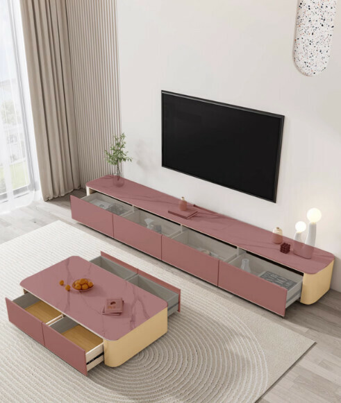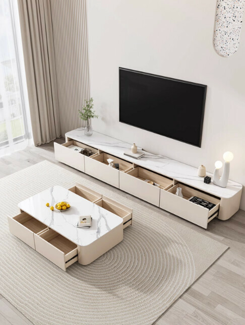 熱推客廳實木岩板落地電視櫃(卡其灰)【2.6米】