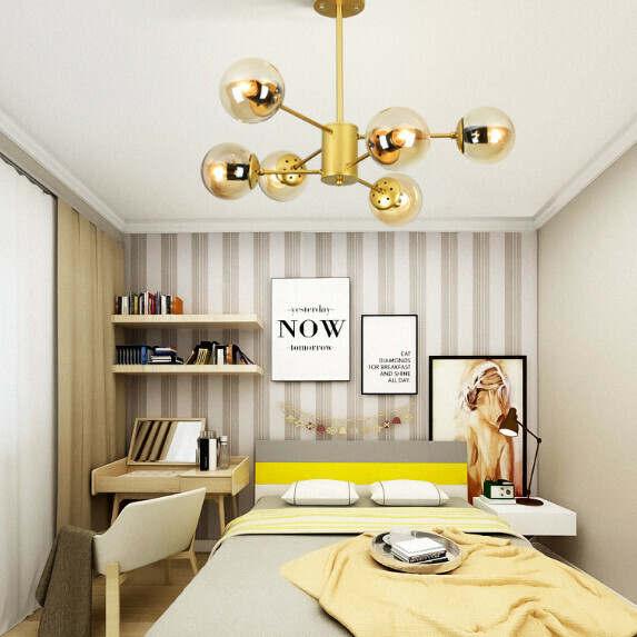 熱推魔豆創意個性分子吊燈(黑色燈體12頭+乳白燈罩)