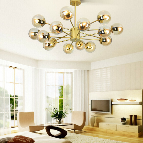 熱推魔豆創意個性分子吊燈(金色燈體6頭+漸變藍燈罩)