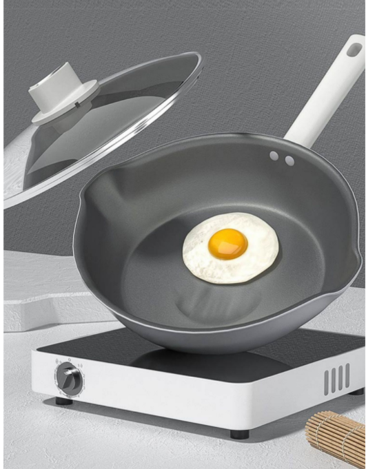 熱推麥飯石不粘鍋無油煙平底煎鍋電磁爐專用(科技灰)24CM