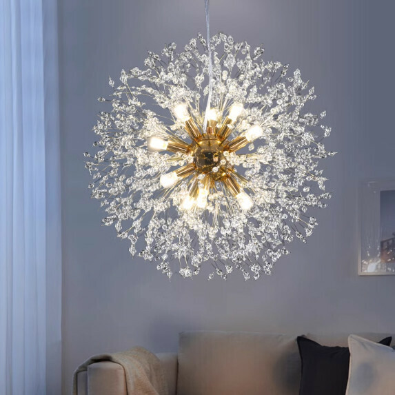 熱推現代創意個性水晶天花燈(12頭金色三色變光)
