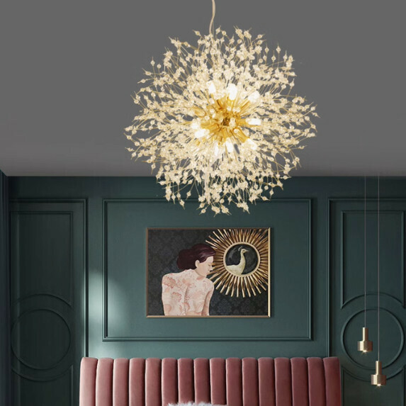 熱推現代創意個性水晶天花燈(16頭金色三色變光小號)