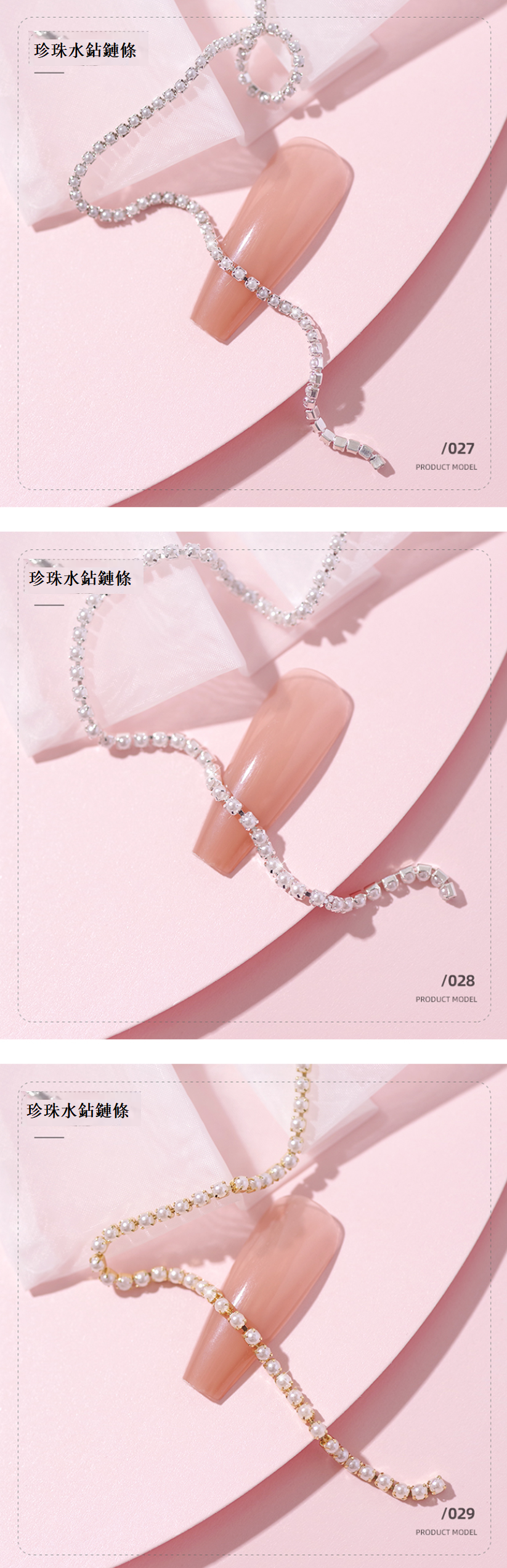 熱推美甲飾品 美甲鏈銀底珍珠 直徑1.0mm 長25cm(27号)