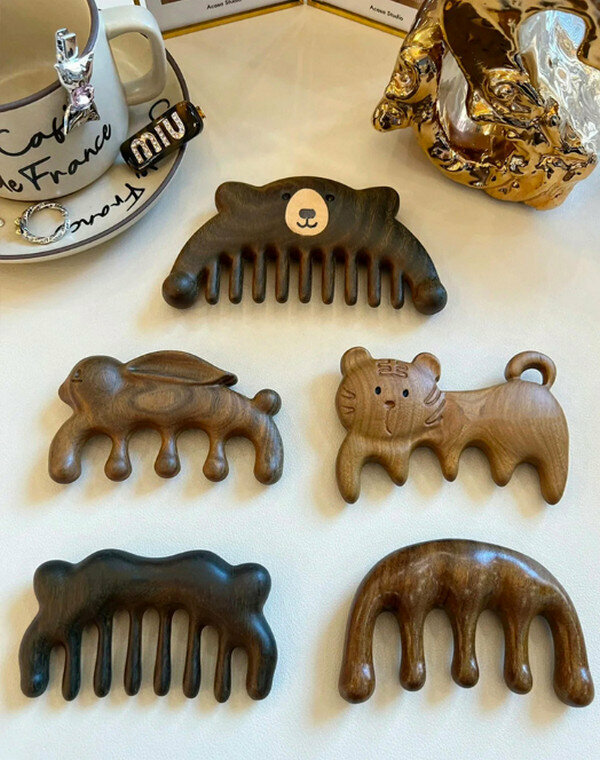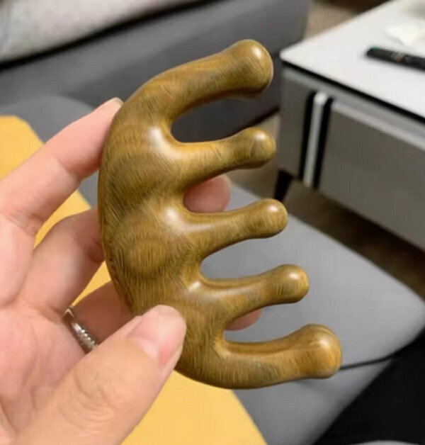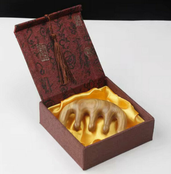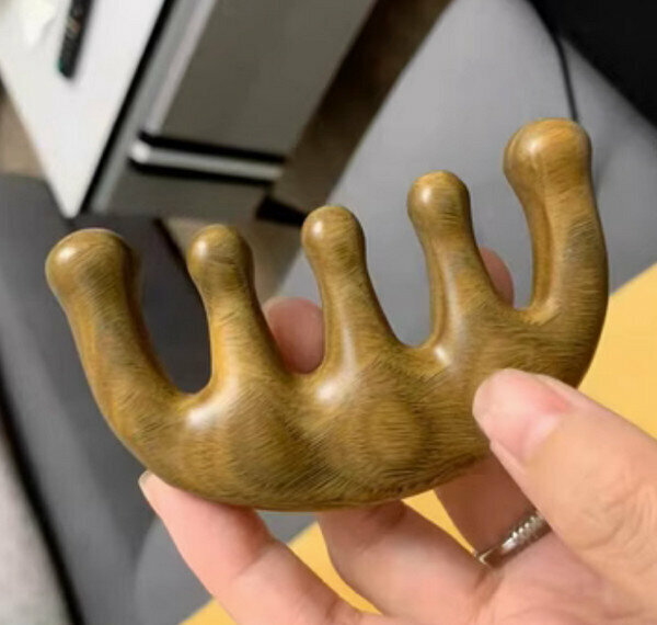 熱推天然養生防脫發木梳--綠檀-五齒經絡梳(禮盒裝)