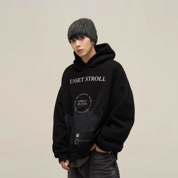 熱推小眾字母印花加絨連帽衛衣【黑色S-XL碼,下單後與客服確認發貨尺碼】