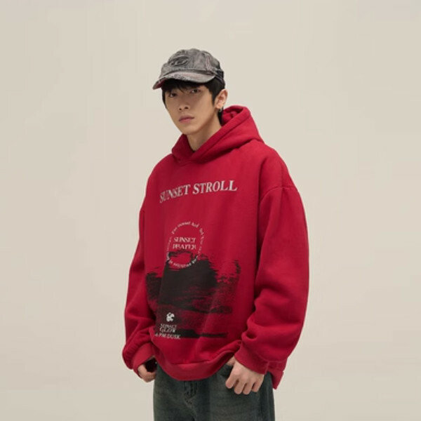 熱推小眾字母印花加絨連帽衛衣【紅色S-XL碼,下單後與客服確認發貨尺碼】