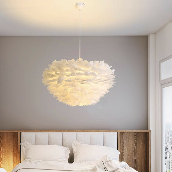 熱推北歐天花燈(40CM白色羽毛吊燈16W)