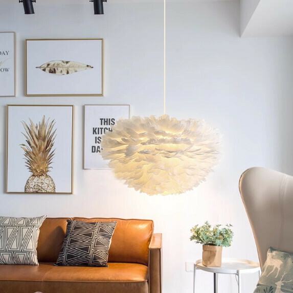 熱推北歐天花燈(60CM粉色吸頂羽毛燈)