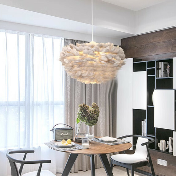 熱推北歐天花燈(70CM白色羽毛吊燈48W)
