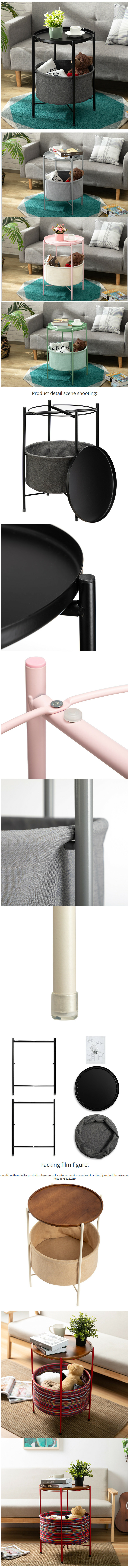 熱推北歐鐵圓桌咖啡桌床頭櫃存儲櫃(黑色)42x52cm