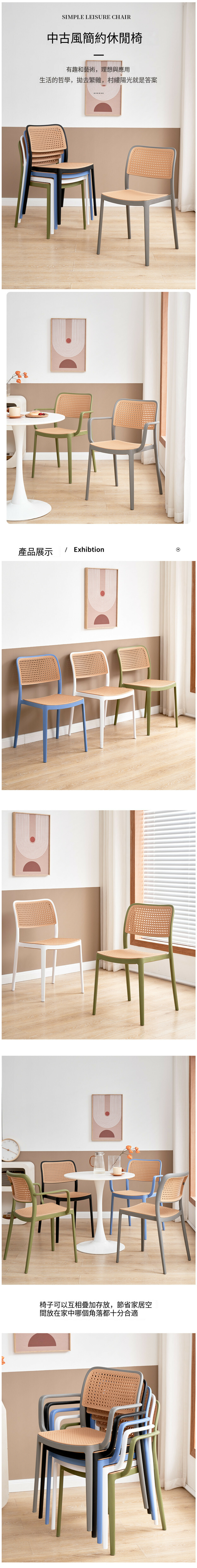 熱推北歐簡約塑膠帶扶手靠背加厚可摺疊餐桌椅子牛角戶外藤條(扶手款)-白