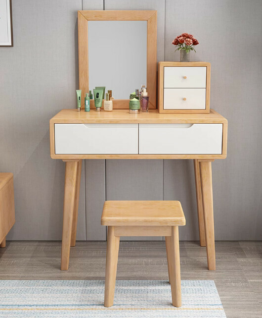 熱推北歐實木梳妝台(60cm胡桃配白色)