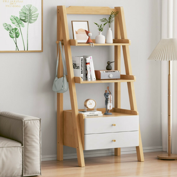 熱推北歐實木家具 床頭櫃 梳化邊桌 書架(原木色+白色)45x36x140cm