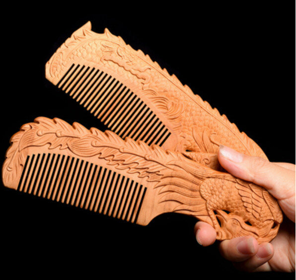 熱推老桃木整木雕花木梳【龍】