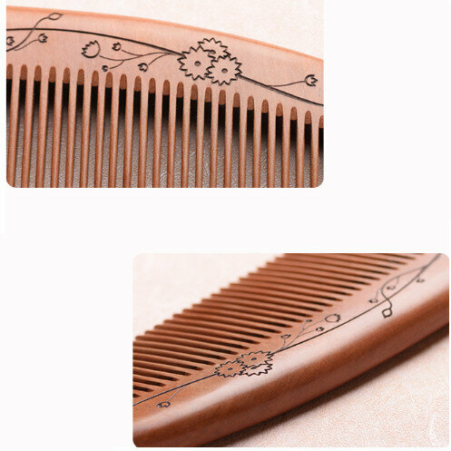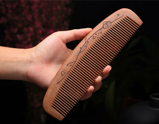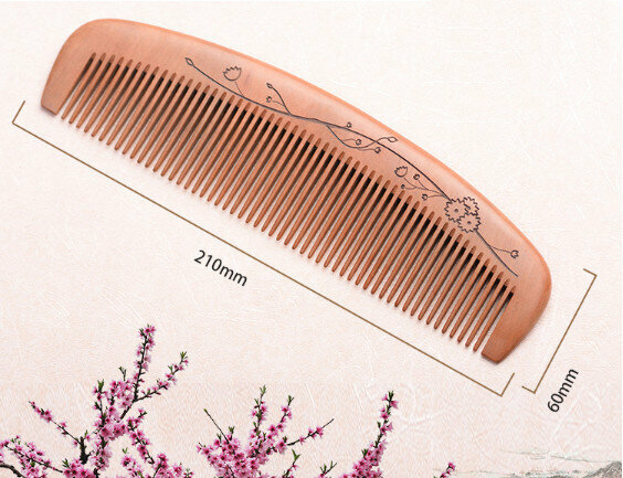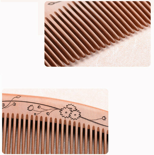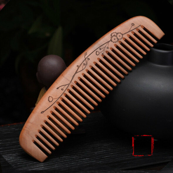 熱推老桃木整木雕花木梳【寬齒】