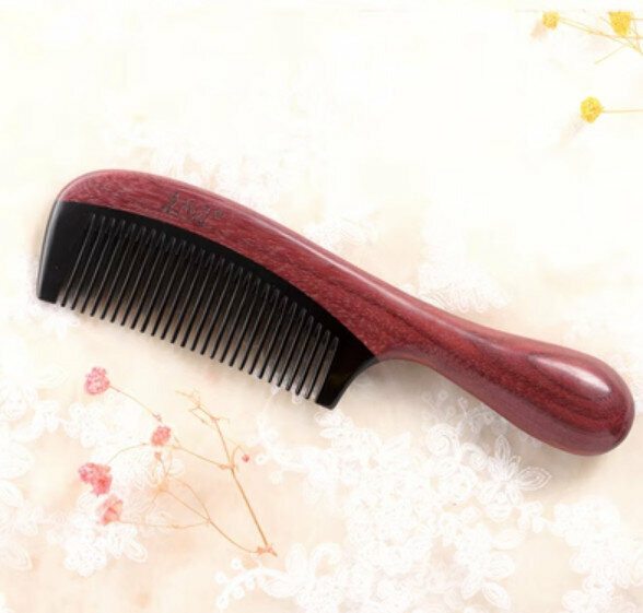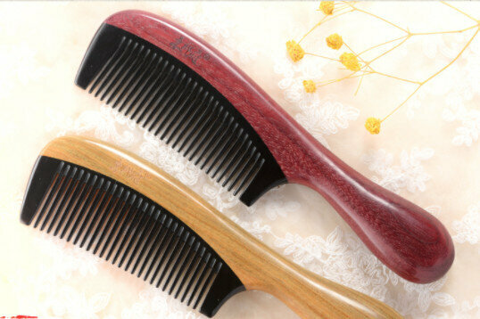 熱推紫蘇木綠檀黑牛角梳子【紫羅蘭+牛角】