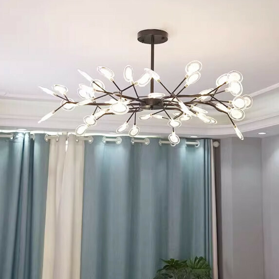 熱推個性螢火蟲天花燈(45頭黑色吊燈磨砂罩子)
