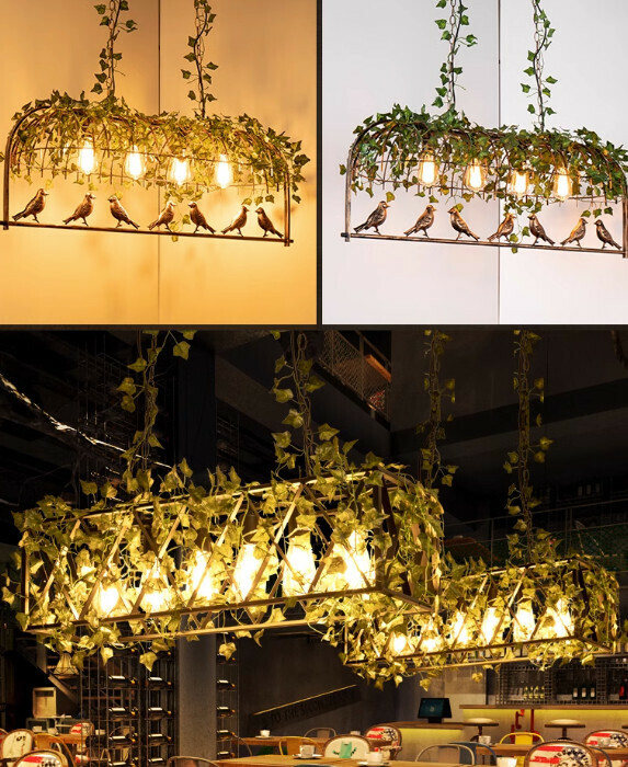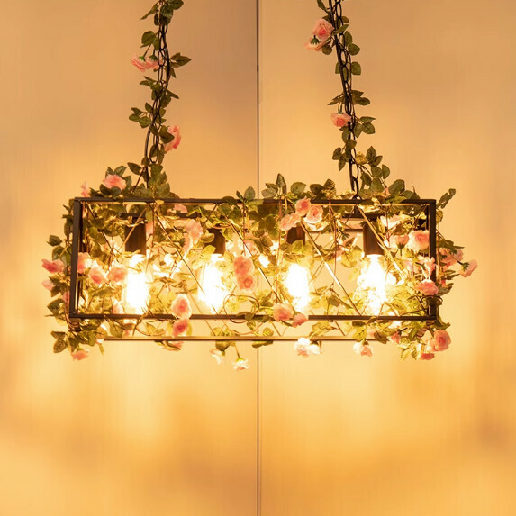 熱推植物鳥籠創意個性天花燈(4頭框框玫瑰吊燈)
