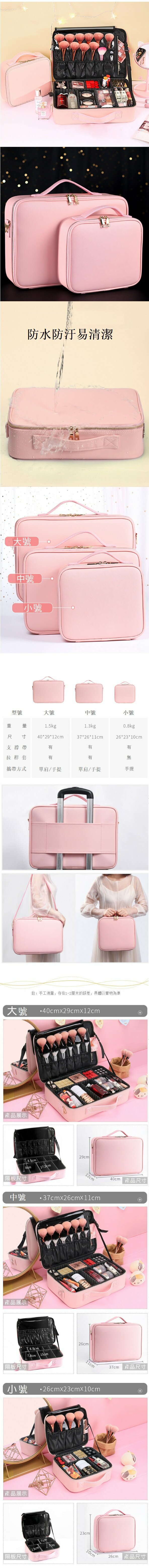 熱推便攜多功能化妝收納包【大號 粉色(皮質金拉鏈)】